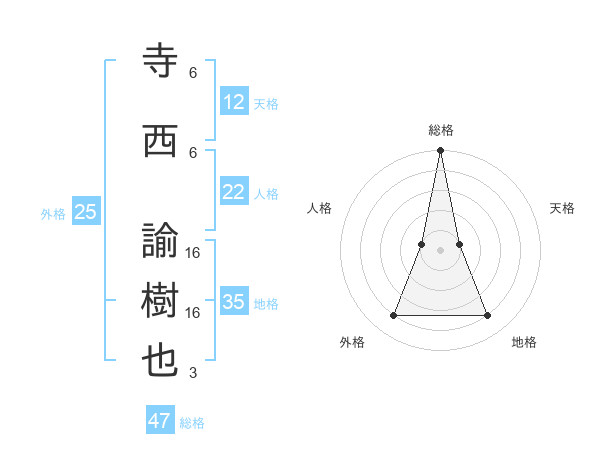 寺西 諭樹也さんの総格は47画の5点!