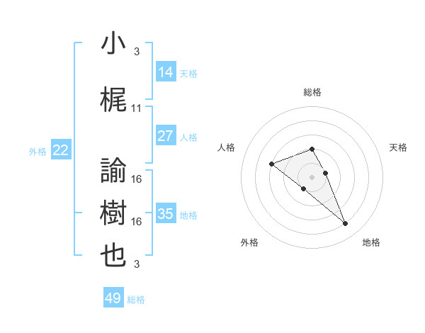 小梶 諭樹也さんを姓名の画数から五運を鑑定