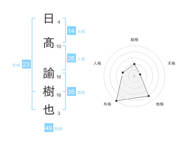 日髙 諭樹也さんの総格は49画の2点!
