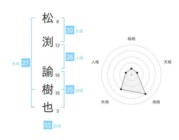 松渕 諭樹也さんを姓名の画数から五運を鑑定