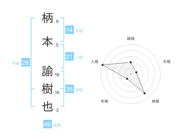 柄本 諭樹也さんを姓名の画数から五運を鑑定