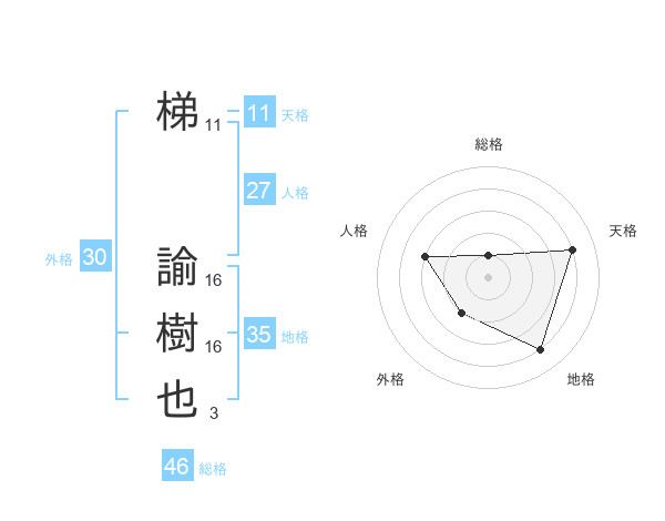 梯 諭樹也さんの天格は11画の4点!