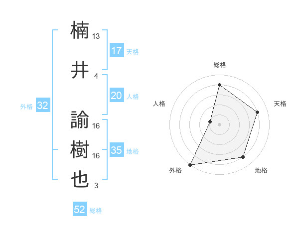 楠井 諭樹也さんを姓名の画数から五運を鑑定