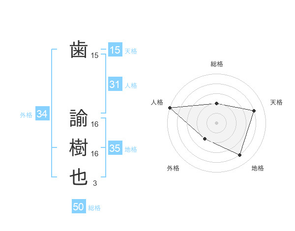 歯 諭樹也さんを姓名の画数から五運を鑑定