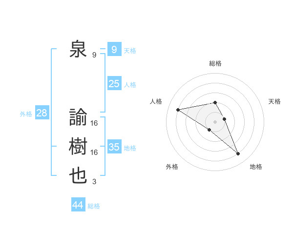 泉 諭樹也さんを姓名の画数から五運を鑑定
