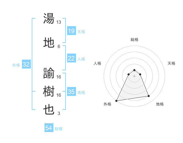 湯地 諭樹也さんを姓名の画数から五運を鑑定