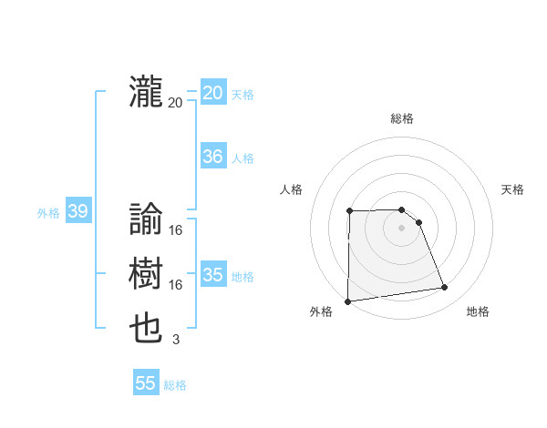 瀧 諭樹也さんの外格は39画の5点!