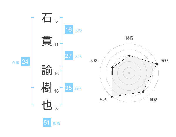 石貫 諭樹也さんを姓名の画数から五運を鑑定