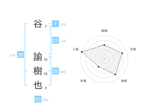 谷 諭樹也さんを姓名の画数から五運を鑑定