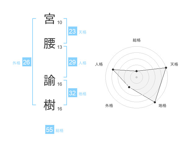 宮腰 諭樹さんを姓名の画数から五運を鑑定
