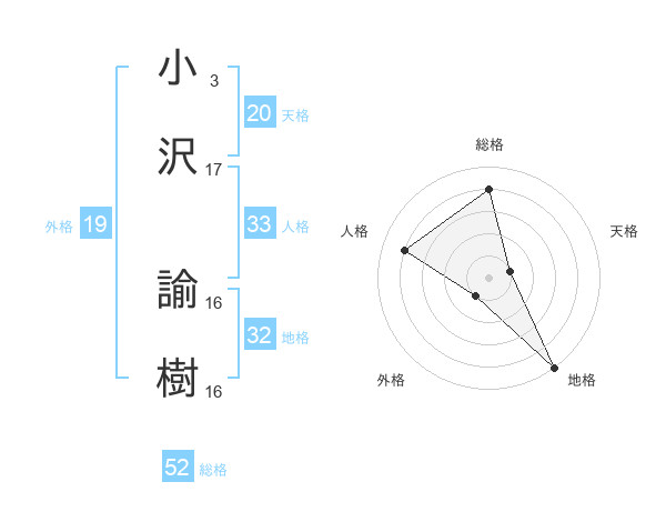 小沢 諭樹さんの総格は52画の4点!