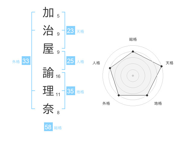 加治屋 諭理奈さんを姓名の画数から五運を鑑定