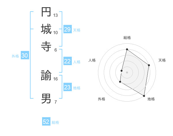 円城寺 諭男さんの総格は52画の4点!