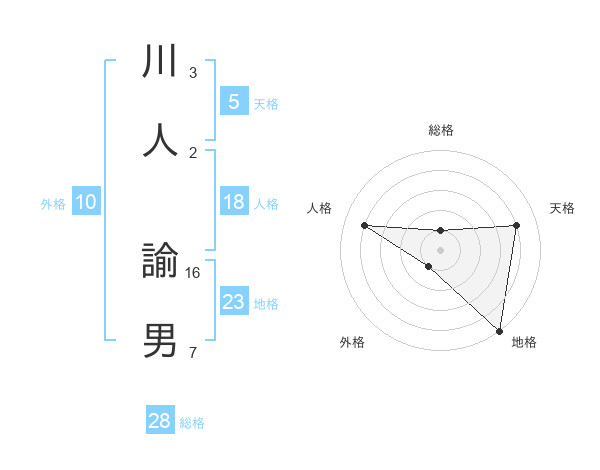 川人 諭男さんの天格は5画の4点!