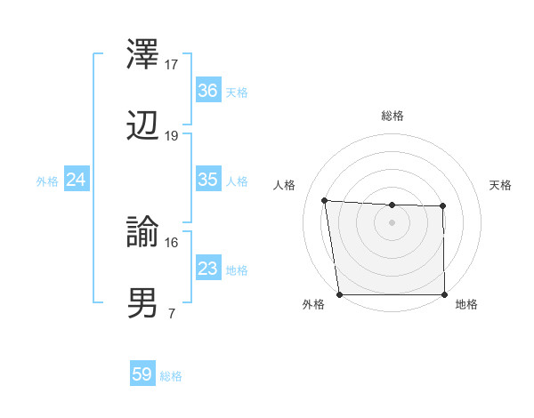 澤辺 諭男さんの総格は59画の1点!
