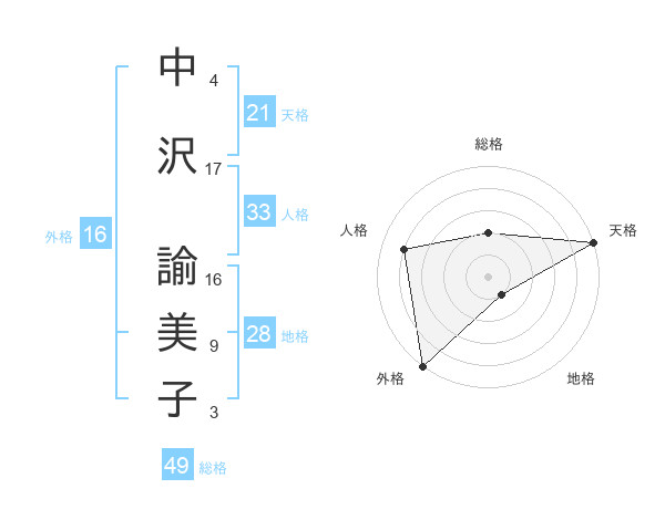 中沢 諭美子さんを姓名の画数から五運を鑑定