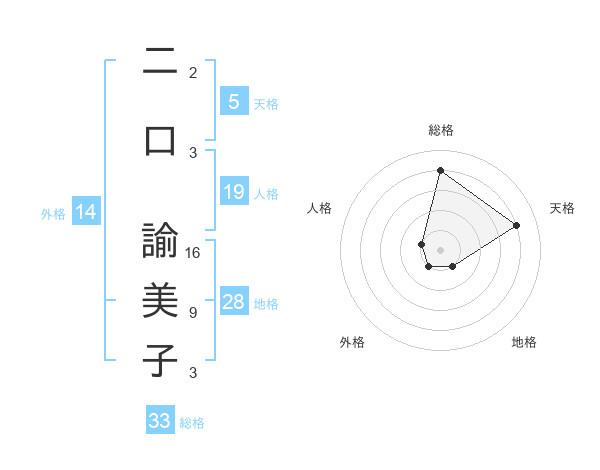 二口 諭美子さんの天格は5画の4点!