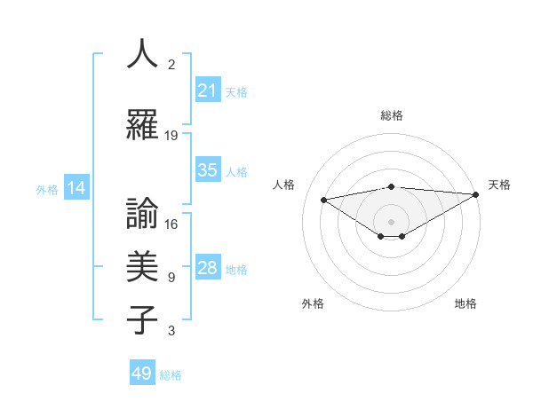 人羅 諭美子さんの天格は21画の5点!