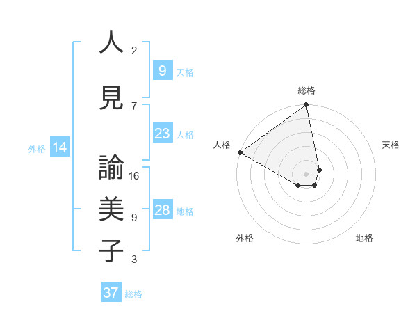 人見 諭美子さんの総格は37画の5点!