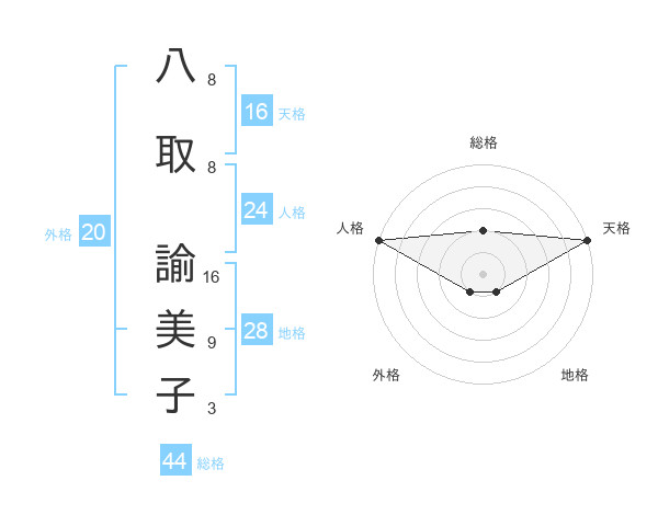 八取 諭美子さんの総格は44画の2点!