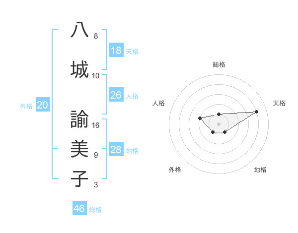 八城 諭美子さんの天格は18画の4点!