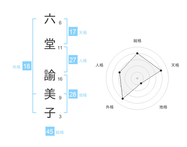 六堂 諭美子さんの天格は17画の4点!