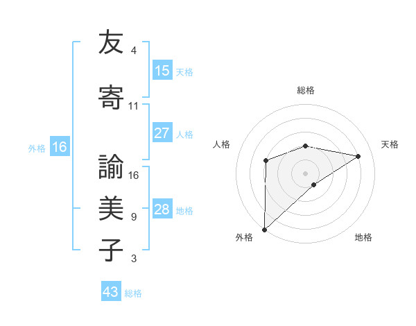 友寄 諭美子さんの外格は16画の5点!