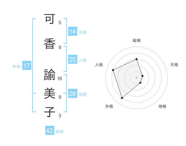 可香 諭美子さんの総格は42画の3点!