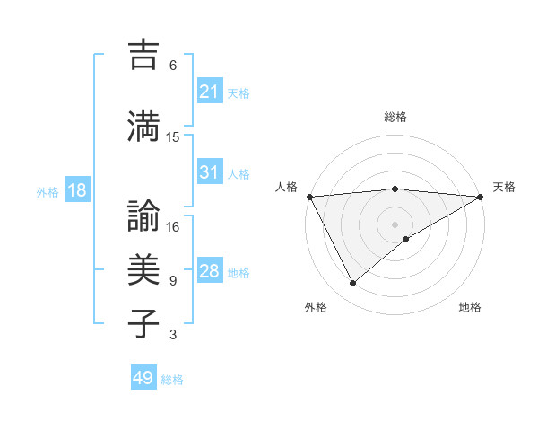 吉満 諭美子さんの天格は21画の5点!