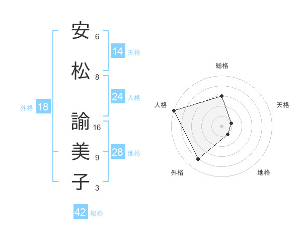 安松 諭美子さんを姓名の画数から五運を鑑定