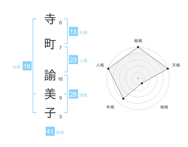 寺町 諭美子さんの天格は13画の5点!
