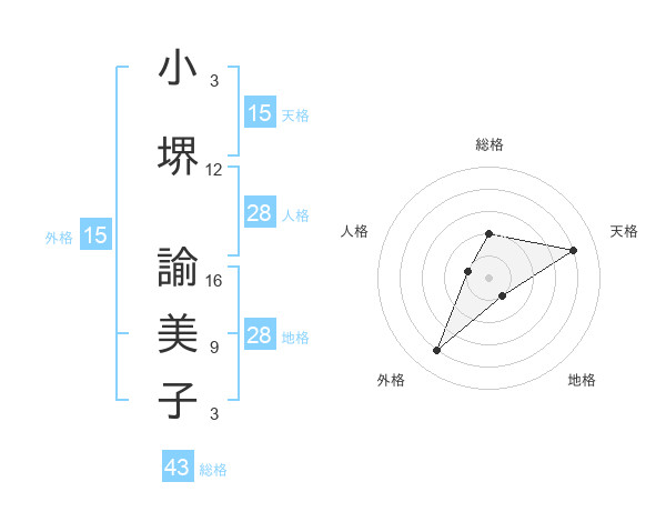 小堺 諭美子さんを姓名の画数から五運を鑑定