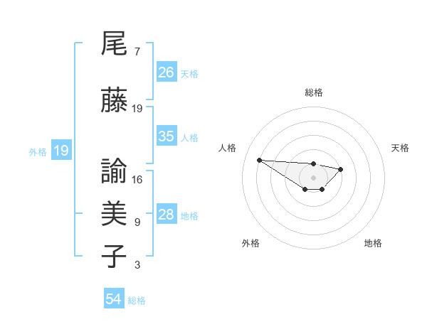 尾藤 諭美子さんを姓名の画数から五運を鑑定