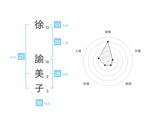 徐 諭美子さんの総格は38画の4点!