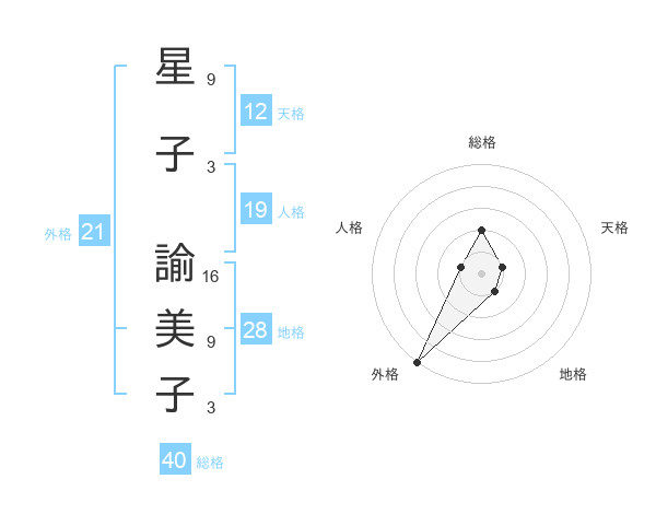 星子 諭美子さんの外格は21画の5点!