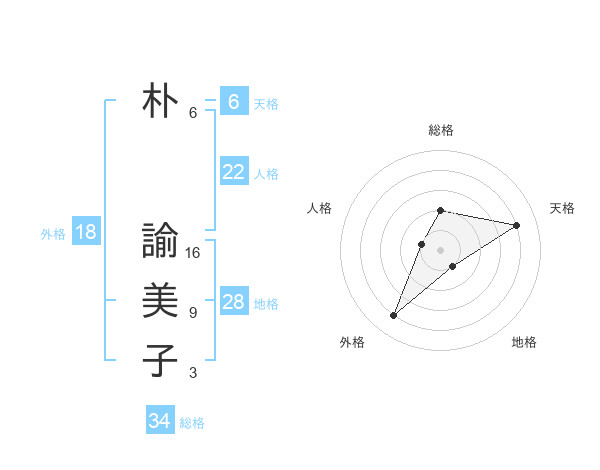 朴 諭美子さんを姓名の画数から五運を鑑定