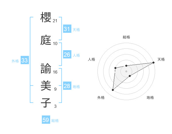 櫻庭 諭美子さんを姓名の画数から五運を鑑定