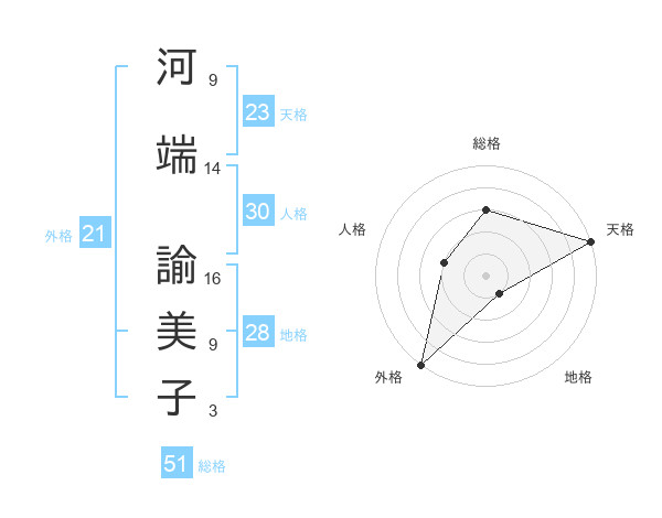 河端 諭美子さんの総格は51画の3点!