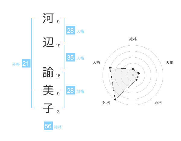 河辺 諭美子さんを姓名の画数から五運を鑑定