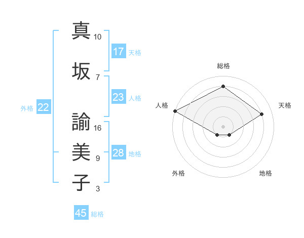 真坂 諭美子さんを姓名の画数から五運を鑑定