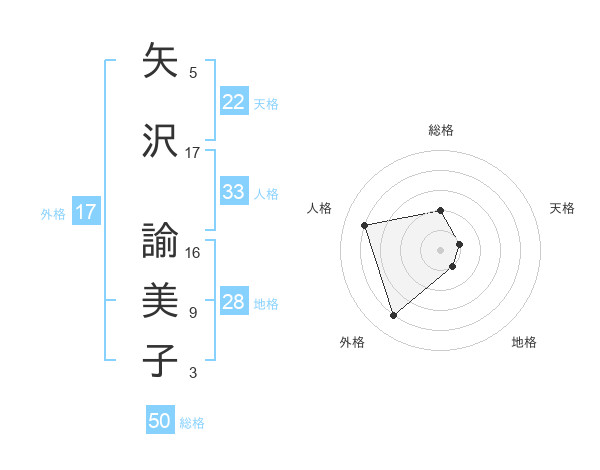 矢沢 諭美子さんの総格は50画の2点!