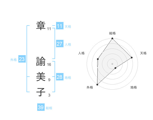 章 諭美子さんの外格は23画の5点!