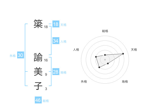 簗 諭美子さんの総格は46画の1点