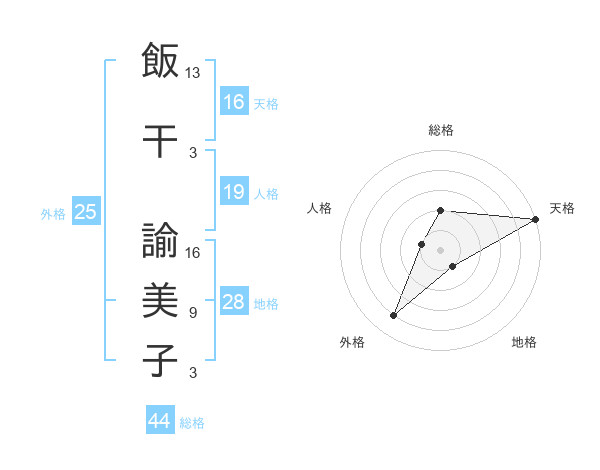 飯干 諭美子さんの天格は16画の5点!