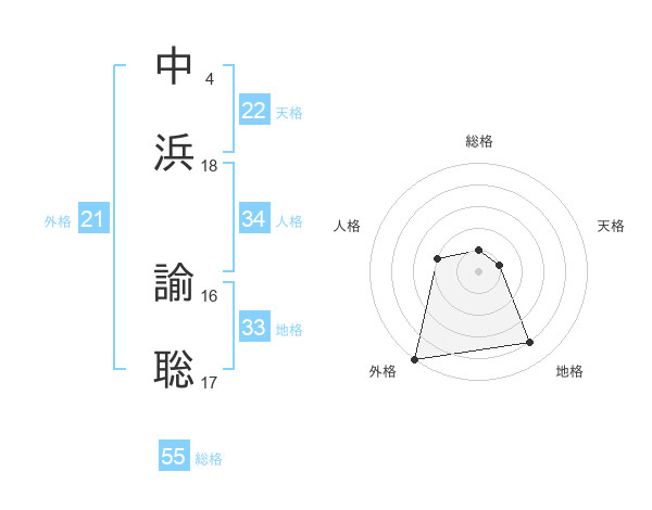 中浜 諭聡さんを姓名の画数から五運を鑑定