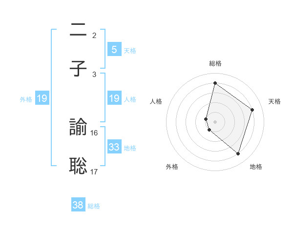 二子 諭聡さんの総格は38画の4点!