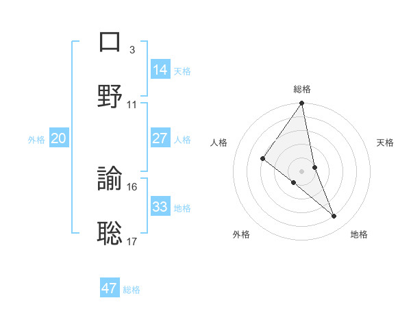 口野 諭聡さんの総格は47画の5点!