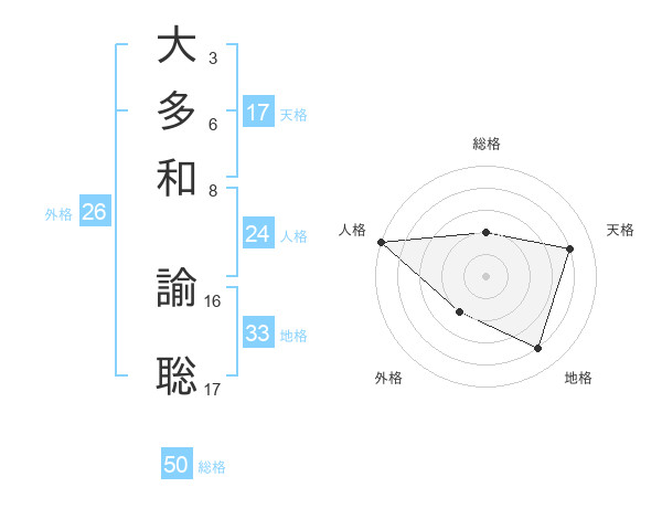 大多和 諭聡さんを姓名の画数から五運を鑑定