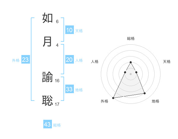 如月 諭聡さんの総格は43画の2点!