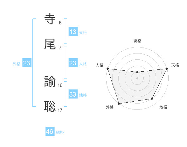 寺尾 諭聡さんの外格は23画の5点!